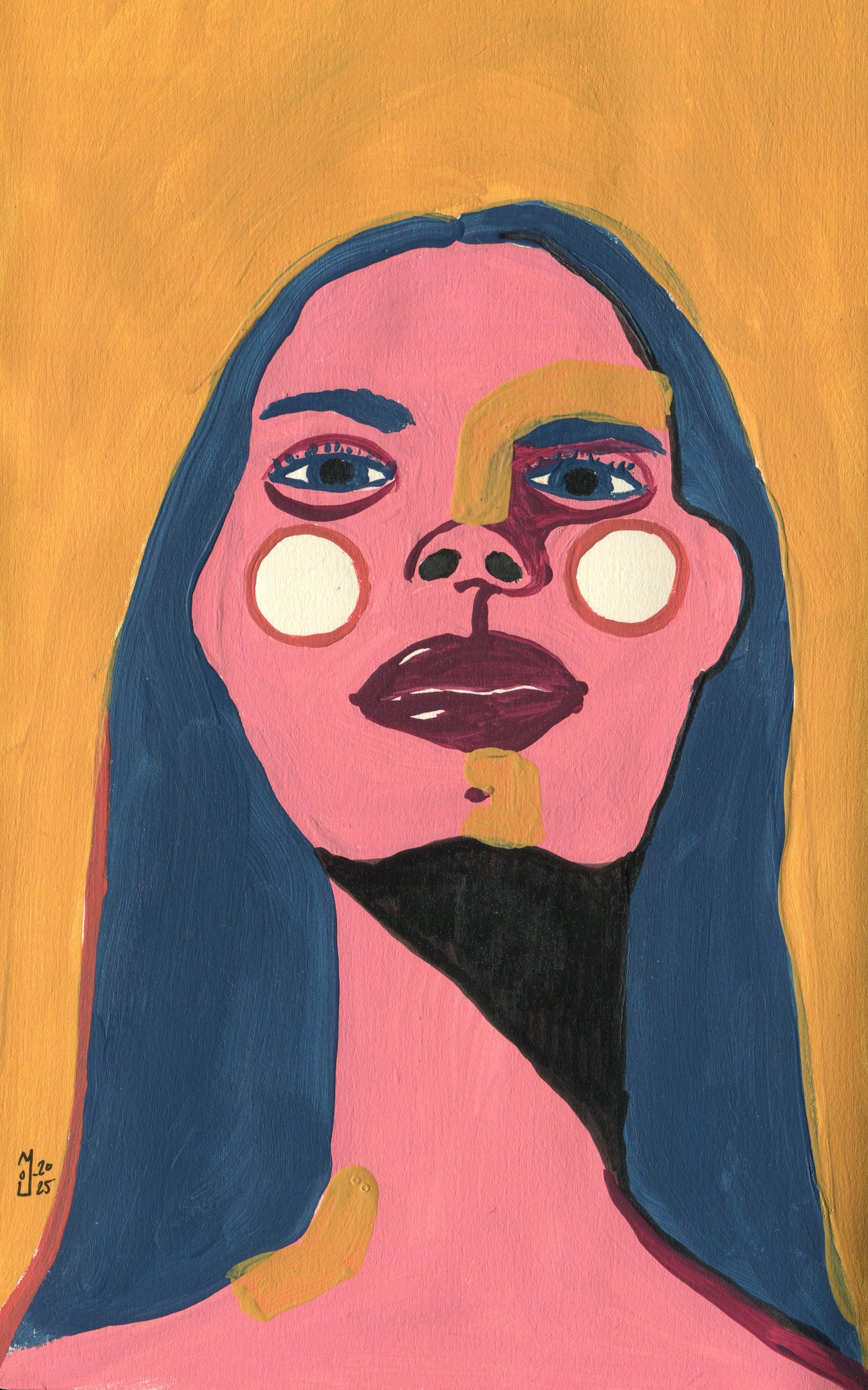Le bijou n'est qu'une partie de mon langage artistique. Depuis 2018, ma série de peintures « Les Naïves » - portraits colorés de femmes réelles - explore les visages qui restent en mémoire. Le dessin, la linogravure, la photo et l'écriture nourrissent également mon univers créatif.